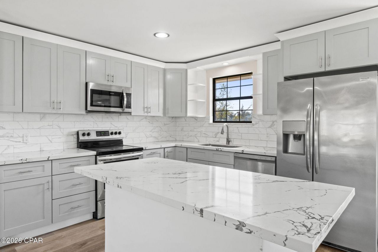 Welcome to 4834 Pine Avenue in Youngstown -- where comfort, style, and location come together in a way that just makes sense. This beautifully updated home offers the kind of open, inviting layout buyers are searching for, featuring a spacious living area anchored by a classic brick fireplace and flowing seamlessly into a fully refreshed kitchen. Clean lines, modern cabinetry, stainless appliances, and a large island make this space as functional as it is sharp -- perfect for everyday living or hosting without missing a beat. Step outside and you'll find room to breathe. The oversized yard offers space to spread out, entertain, or simply enjoy the quiet pace that makes Youngstown so appealing. But what truly sets this property apart is its location. Tucked away from the noise, yet incredibly convenient -- you're just a short drive to town, making daily errands easy, while still being within reach of Panama City Beach when you want your toes in the sand. Tyndall Air Force Base is nearby for those commuting, and outdoor lovers will appreciate quick access to Deer Point Lake and Bear Creek -- ideal for fishing, boating, or unwinding on the water. Whether you're looking for your next home base, a solid investment, or just a place that checks all the boxes without overcomplicating things -- this one delivers. Opportunities like this don't sit around. Come see it for yourself before its gone!
